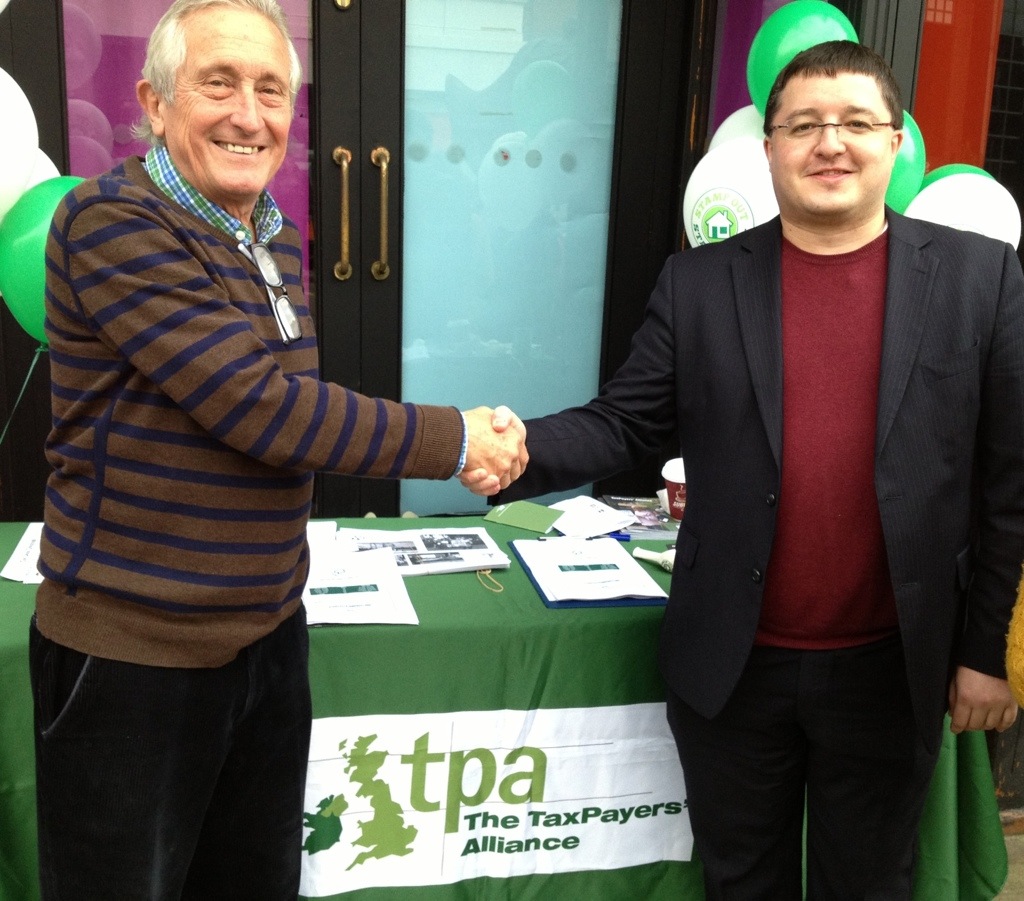 Christian supported the Taxpayers’ Alliance stall on Guildford High Street today, which was manned by Burpham resident Martin Wing (pictured) and other volunteers. The Taxpayers’ Alliance was campaigning against the impacts of Stamp Duty, which can amount to many thousands of pounds on a typical Surrey property, causing great difficulties for first time buyers in particular. Saturday shoppers were very interested in the low tax message being put forward by the Alliance.